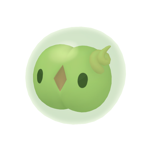 Solosis is a round, green Pokémon surrounded by a darker green, gel-like substance. This liquid covering allows Solosis to live under any conditions, even in the vacuum of space, but when taking heavy blows, its fluid covering may leak away. Its inner body has dark, oval eyes and a red diamond-shaped mouth. On the upper left side of its head is a curly, yellow growth that resembles the endoplasmic reticulum of a cell. It uses psychic powers to communicate with telepathy, as well as to drive away potential threats.
