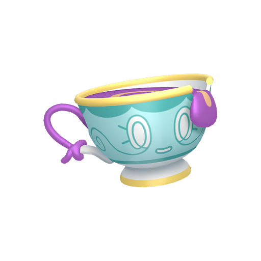 Sinistea is a Pokémon said to be created when a lonely spirit possesses a cold, leftover cup of tea. It is one of the shortest Pokémon in existence. The teacup that Sinistea lives in is a famous piece of antique tableware; seafoam green in color with gold rims and a lacy pattern that resembles a face. However, there are many forgeries in circulation.