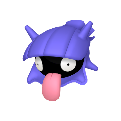 Shellder is a bivalve mollusk Pokémon encased within a spiky, blue-violet bivalve shell. It has two round white eyes with tiny black pupils. Its enormously long red tongue is used to burrow itself into the sand to sleep overnight and also to lure and capture prey. The tongue protrudes even when its shell is closed and tugging it will cause the shell to pop open. Its soft and tender body is well-protected by its extremely durable shell, which is purported to be harder than diamonds and has historically been used by people to make shields. It can make pearls from accumulated sand, though it discards them as they are typically in its way.